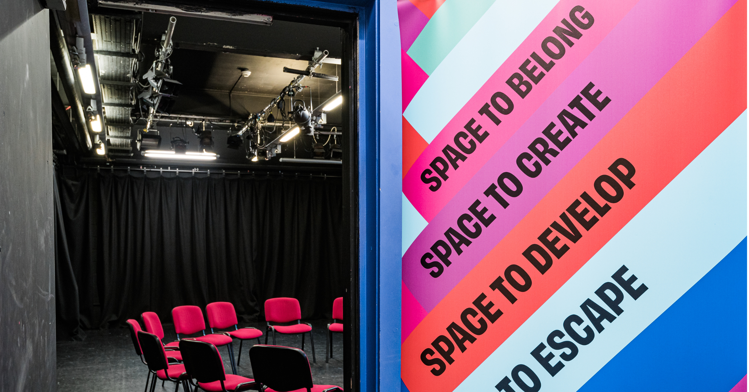 These doors run along two main corridors within The Boardwalk and provide essential access to all office spaces, studios, and our 120-seat black box theatre.
